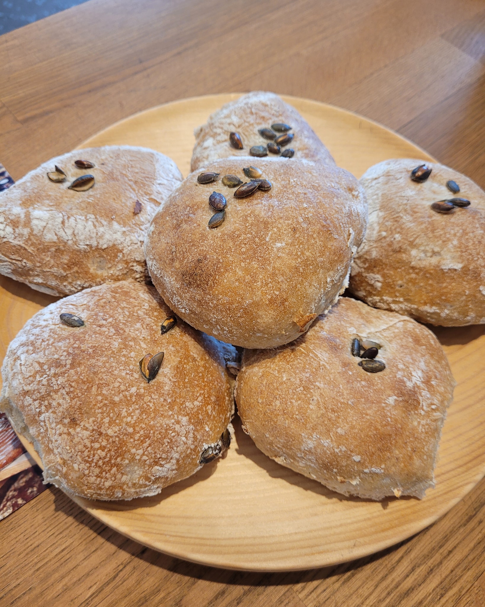 On the farm, we have a bakery where we bake with pure ingredients and with long fermentation times. We work locally produced and according to the season. On Saturdays there is always freshly baked goods on the shelf. In the cake counter you will find our favorite sweets. Carrot cake, Ryttarkaka and Silvia cake are always available. The rest varies a little depending on the season and what we feel like.